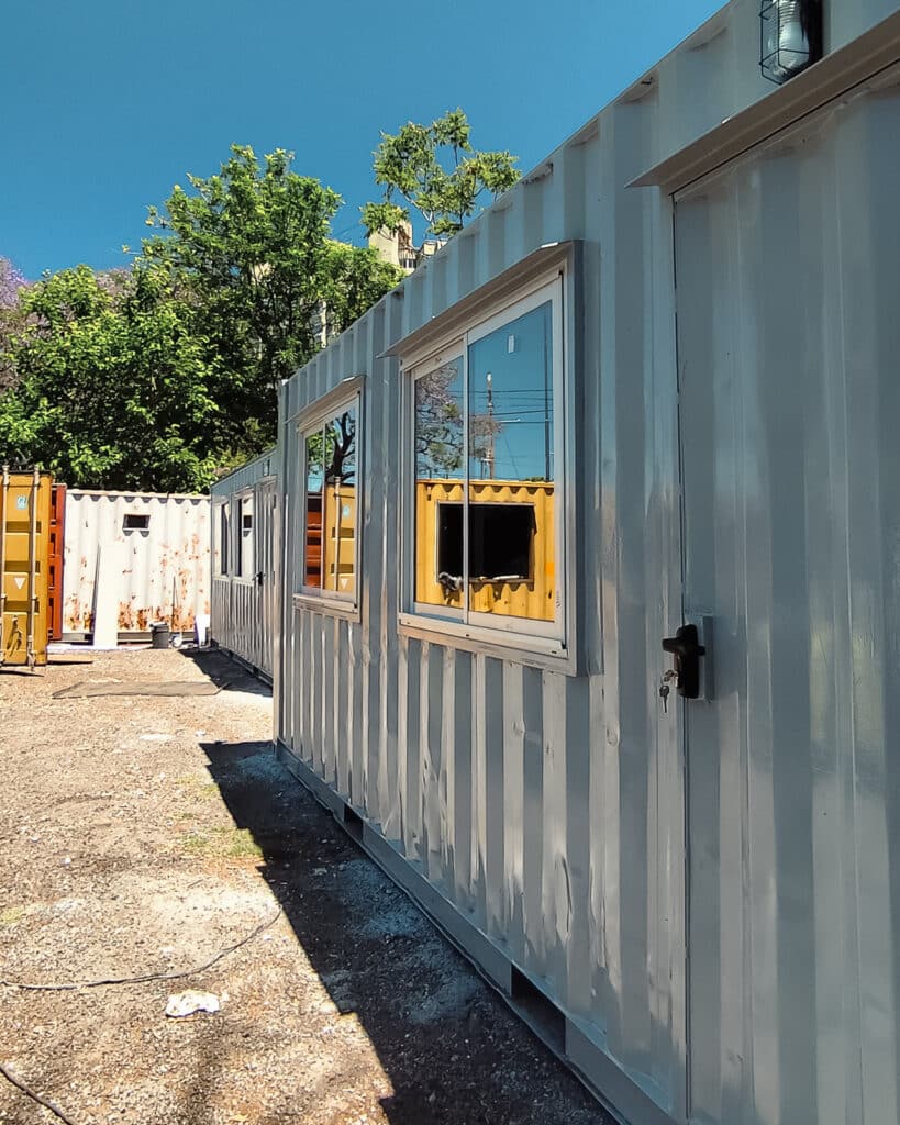 El pedido fue claro: necesitaban oficinas robustas, bien aisladas, con excelente iluminación natural y preparadas para un uso diario exigente. A partir de contenedores marítimos originales de 20’, trabajamos en dos módulos idénticos, cuidando que cada detalle técnico y estético estuviera alineado con los requerimientos del cliente.