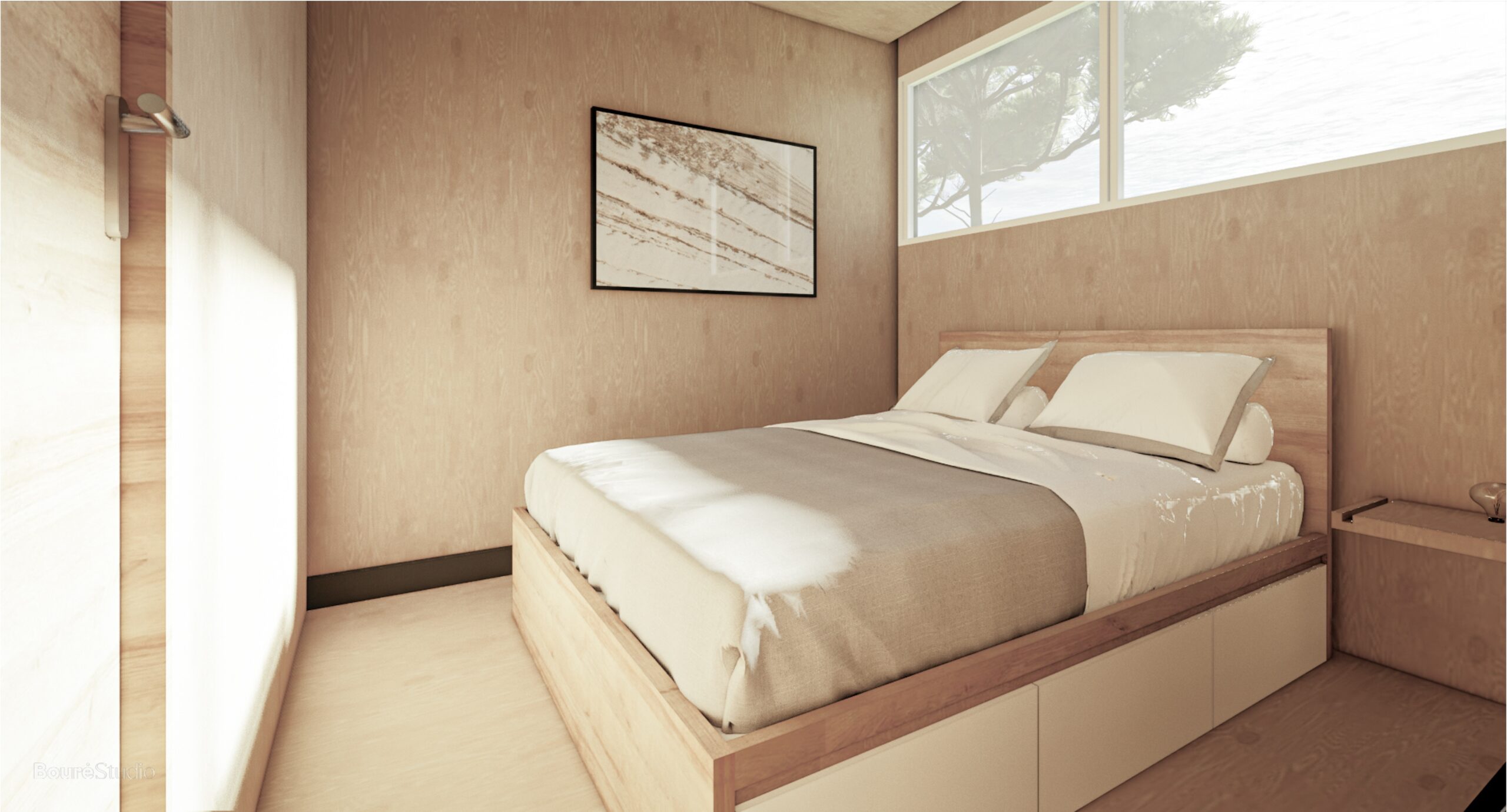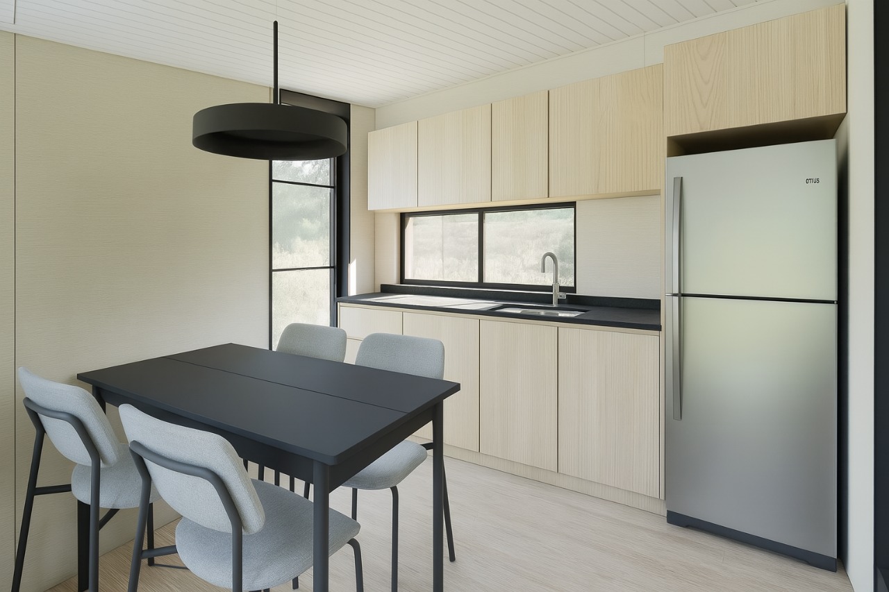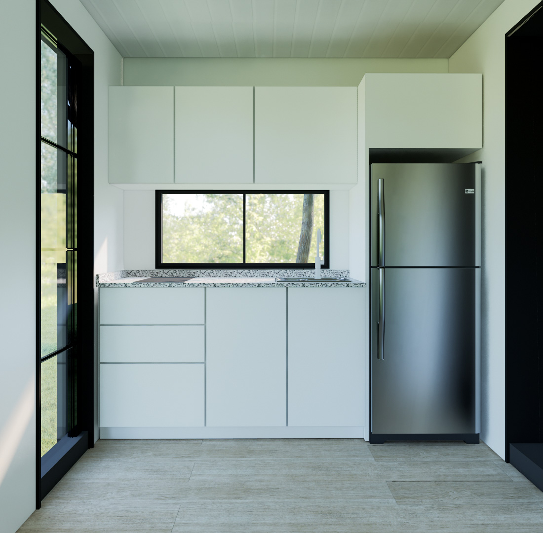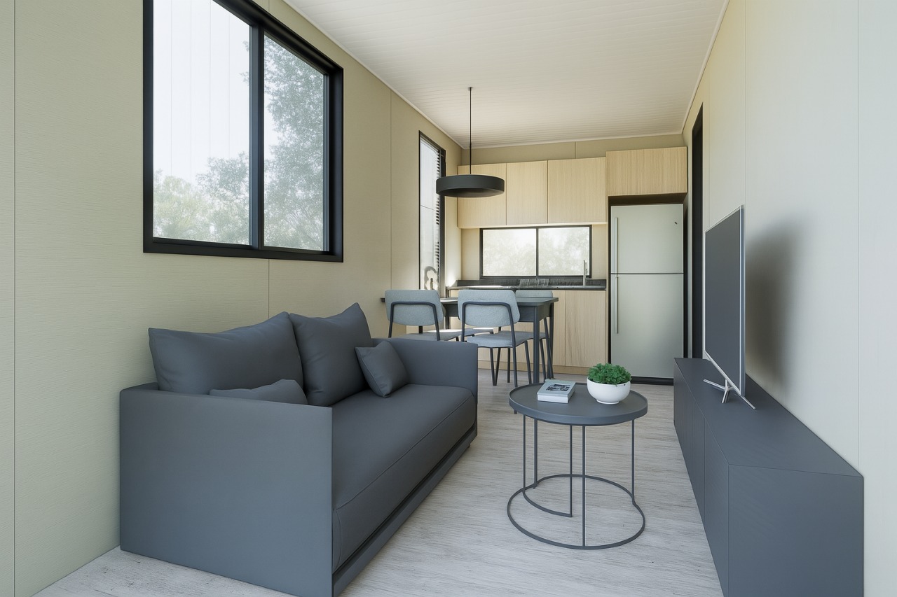 Dos módulos de 20 pies combinados dan forma a un modelo de 30 m² que redefine el concepto de vivienda compacta, con un equilibrio perfecto entre practicidad, estilo y calidez.